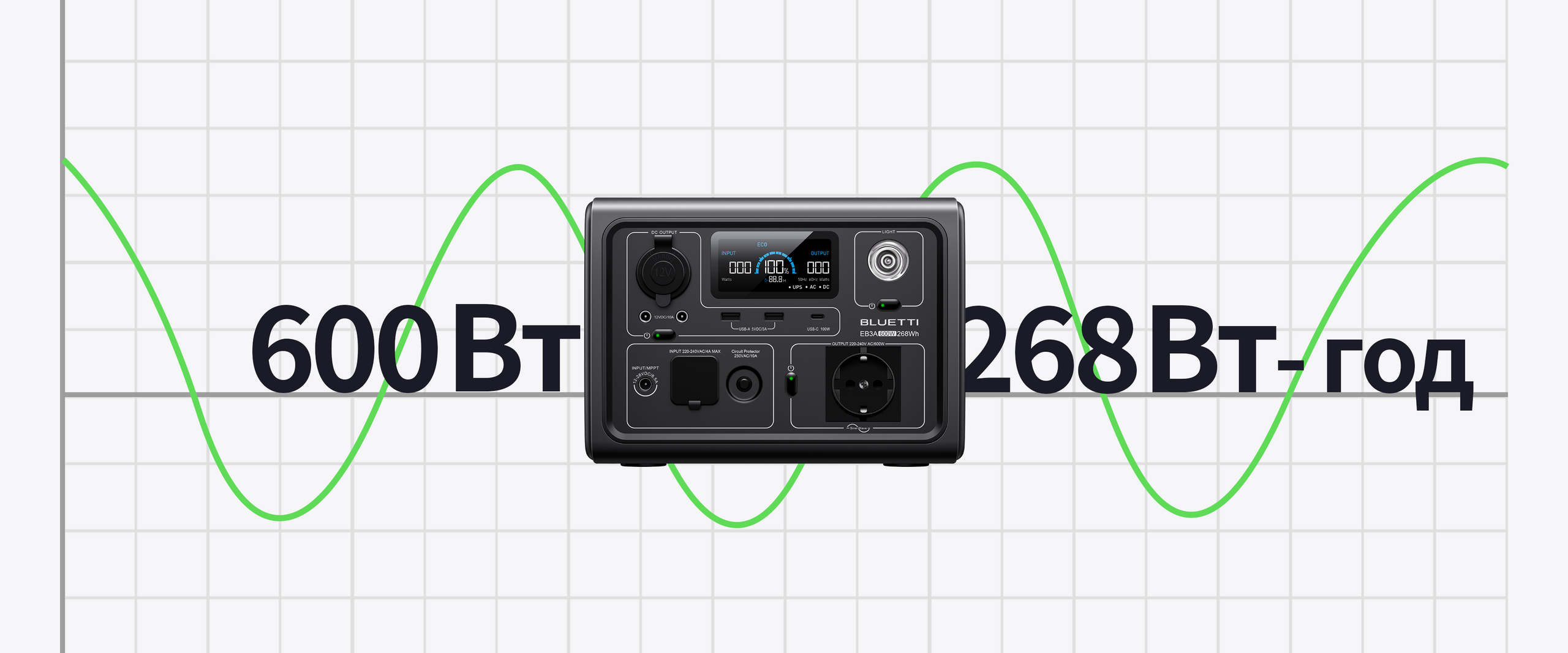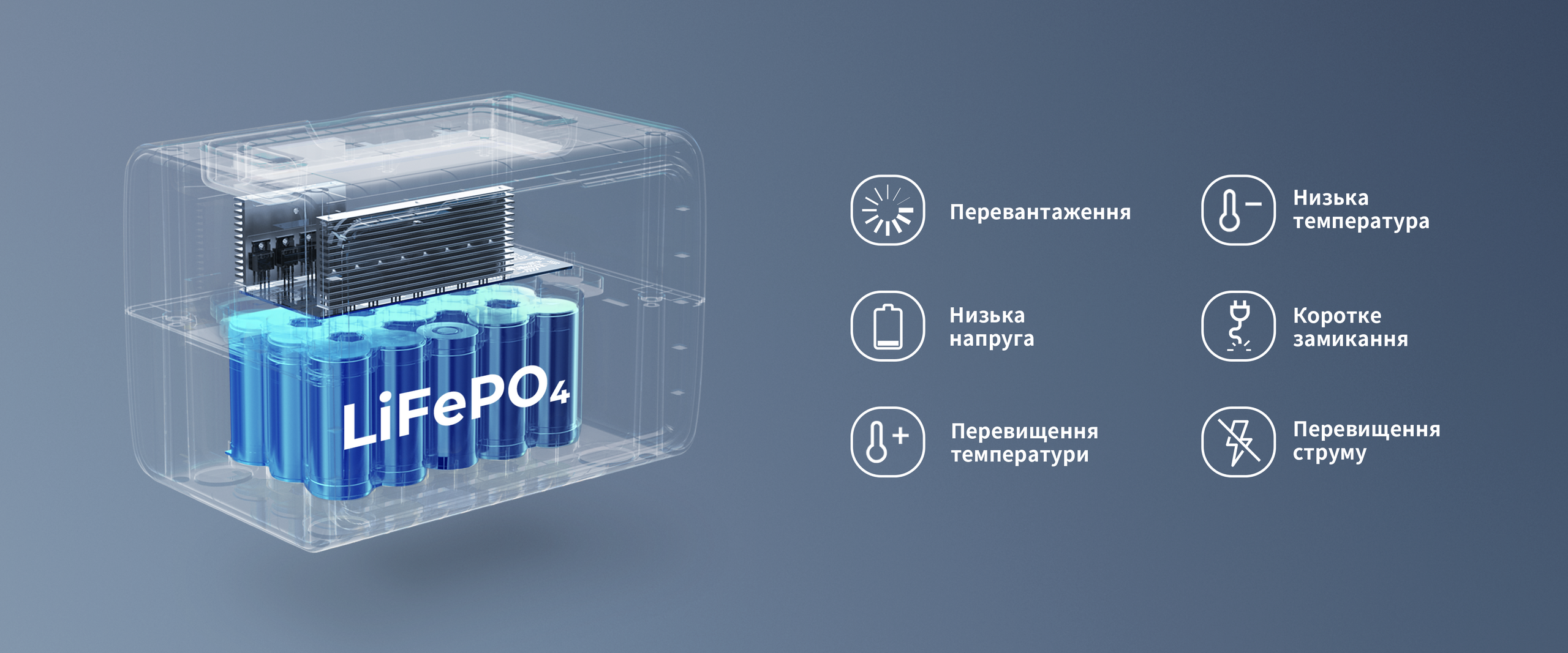 - Батарея LiFePO₄ з більш ніж 2 500 циклами заряду до 80%;