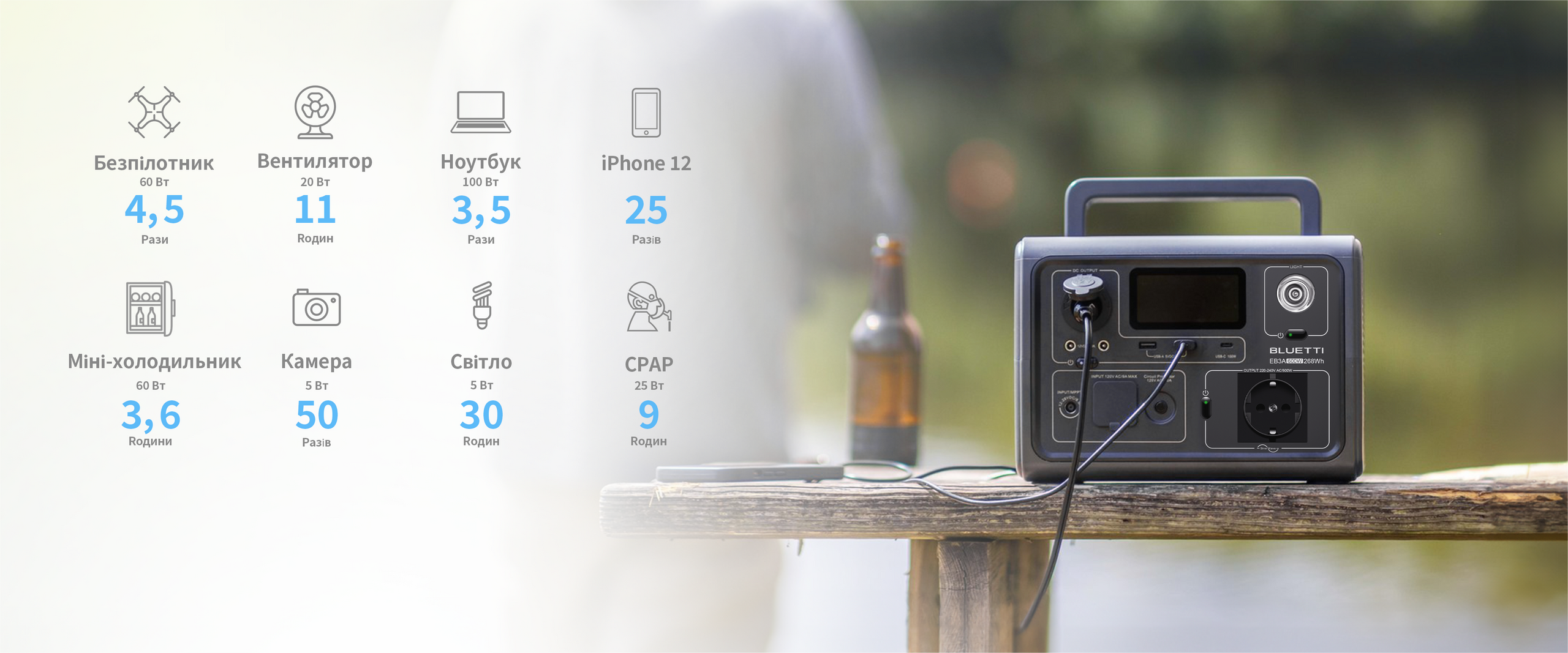 BLUETTI EB3A Портативна Електростанція | 600 Вт 268 Вт·год