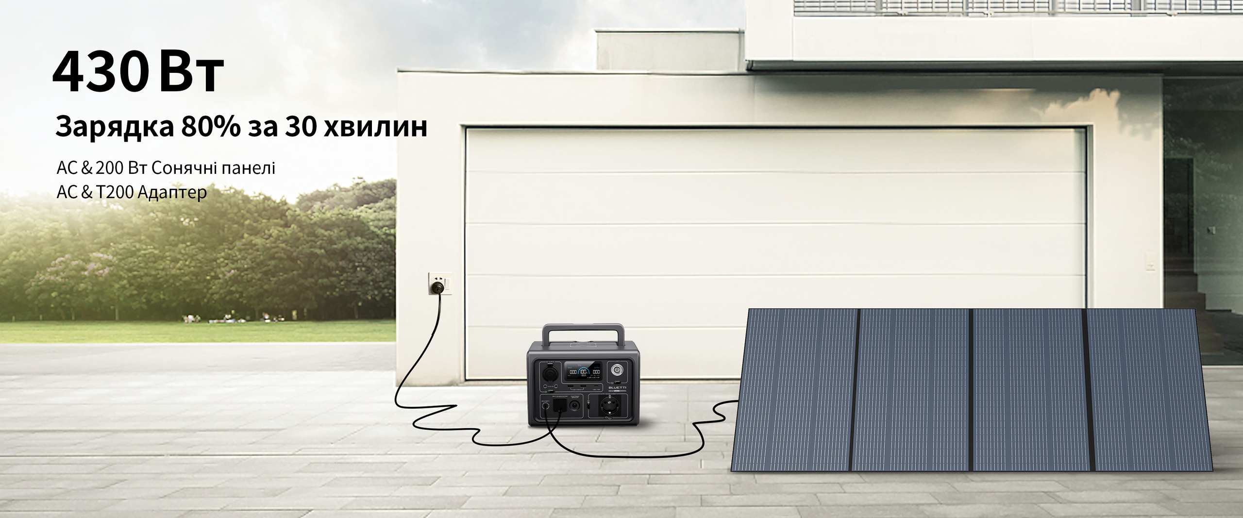 Максимум 430 Вт через одночасне заряджання від мережі AC та сонячних панелей.